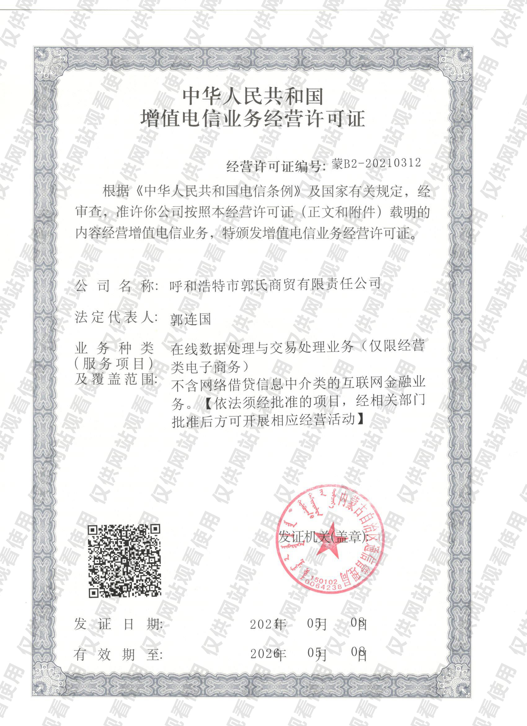 電信增值許可證 蒙B2-20210312